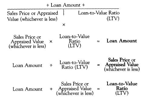Remember – PART on top TOTAL and RATE on the bottom – In this case the Loan Amount will represent the PART that a lender is willing to loan of the Price or Value which is the TOTAL. The Loan to Value Ratio will be the RATE.