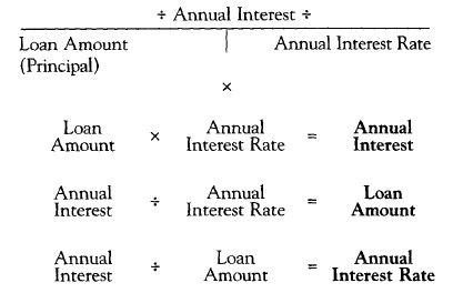 Again, following the T-Bar method of remembering – PART on top TOTAL and RATE on the bottom – In this case the Annual Interest will represent the PART of the Loan Amount loan which is the TOTAL. The Annual Interest Rate will be the RATE.