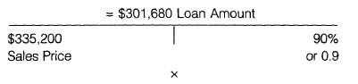 $335,200 x 90% (.90) = $301,680 Loan