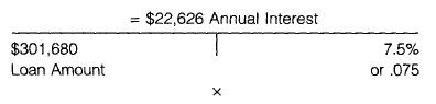 FOR EXAMPLE A parcel of real estate sold for $335,200. The lender granted a 90 percent loan at 7.5 percent for 30 years. The appraised value on this parcel was $335,500. How much interest is paid to the lender in the first monthly payment?