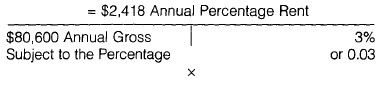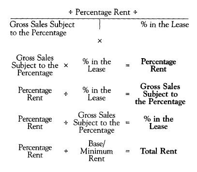 When establishing the rent to be charged in a lease for retail space, the lease may be a percentage lease instead of a lease based on dollars per square foot. In the percentage lease, there is normally a base or minimum monthly rent plus a percentage of the gross sales in excess of an amount set in the lease. The percentage lease also can be set up as a percentage of the total gross sales or of the base/minimum rent, whichever is larger. We shall look at the minimum plus percentage lease only.