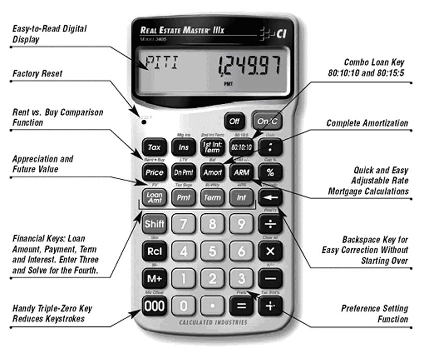 The calculator preferred by the Career Institute would be any of three calculators by Calculated Industries designed specifically for real estate. The Real Estate Master IIIX Real Estate Finance Calculator will calculate complete payment solutions, amortization, combo loans, ARMs, rent versus buy comparisons, and much more. The Real Estate Master IIIX (model 3405) performs nearly every post-qualifying real estate calculation right there in front of the client to help boost sales.